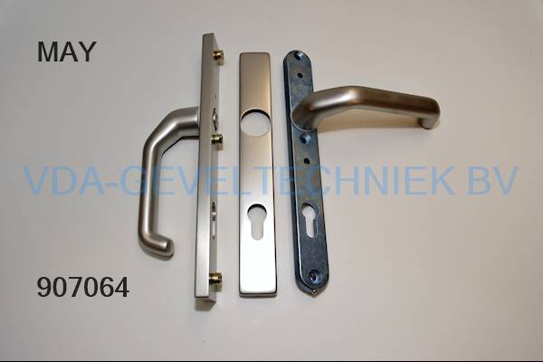 Deurkruk langschild BI/BU op rechtschild pc 92 incl. stift 130mm en schroeven MAY (greep) (klink) (hendel) (uitlopend artikel)