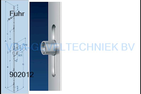 Fuhr meerpuntssluiting 856 Doornmaat 30/ PC/PZ 92/ Voorplaat U24 x Lengte= 2400MM type1 4x rolnok krukbediend.