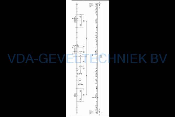 Schuco GU Meerpuntssluiting Paniek Drn 35/92/9/U24 x 1820 mm RVS Links 3 x blokschoot HoH kast boven 730 onder 760 mm + 3 sluitplaat + eindstukjes